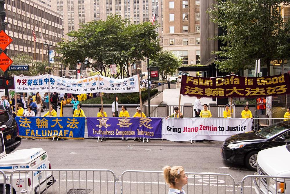 Za vrijeme njegove nedavne posjete New Yorku, kineskog premijera Li Keqianga su dočekali miroljubivi protesti praktikanata Falun Gonga, koji su pozivali da se bivši vođa Komunističke partije Kine izvede pred lice pravde. Jiang Zemin je odgovoran za organizovanje i podržavanje devastirajućeg progona Falun Gonga koji traje već 17 godina. (Falun Gong je drevna praksa kultivacije bazirana na principima Istinitosti-Dobrodušnosti-Tolerancije.)