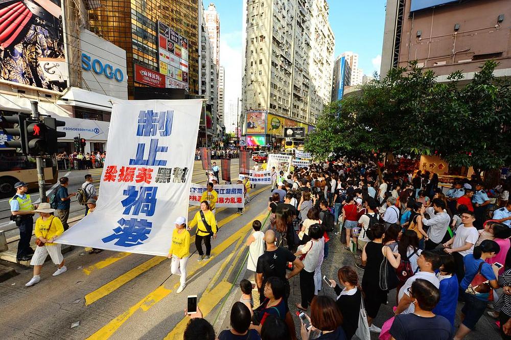 Nakon skupa, marš od 1.200 učesnika je krenuo od Sjevernog pristaništa za trajekte u 14 časova, prošao kroz centar grada, da bi se završio, četiri sata kasnije, pred uredom za vezu Centralne kineske vlade.