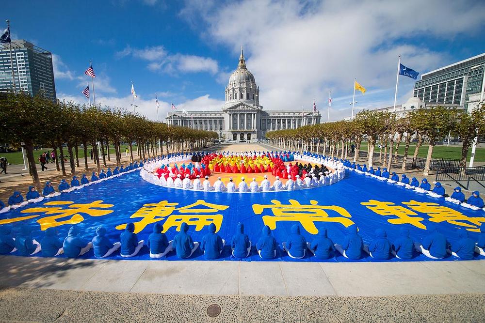 Stotine praktikanata Falun Dafa su se okupili ispred Gradske vijećnice u San Francisku 23. oktobra 2016. godine da bi formirali Falun znak i druge Dafa simbole. Ovo je bila jedna od aktivnosti u vezi sa godišnjom konferencijom za razmjenu iskustava za Zapadnu obalu Amerike koja je održana 24. oktobra.