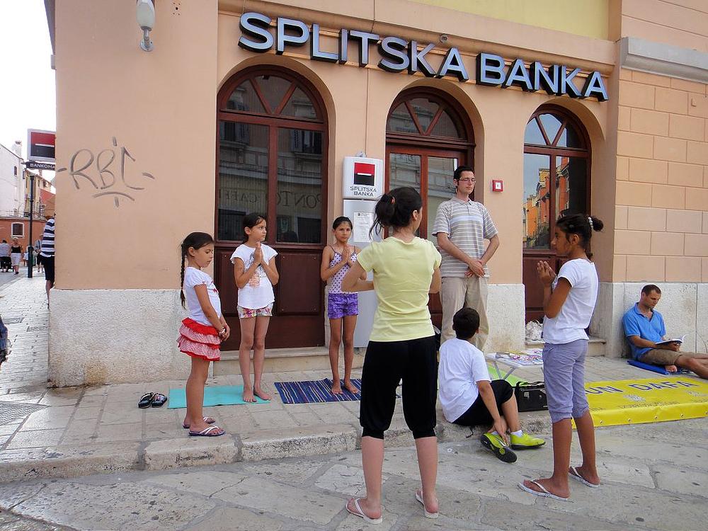 Poslijepodne istog dana, održan je info dan u Rovinju. Bilo je puno ljudi i turista koji su uzimali letke i lotosove cvjetove. I u Rovinju su djeca bila izrazito zainteresirana naučiti vježbe. Dvije djevojčice su meditirale zajedno s praktikantima u petoj vježbi. Djeca su dolazila izravno pitati praktikante da im pokažu vježbe. Jedan dječak je rekao: „Zanima me samo peta vježba. Pokažite mi petu vježbu.“ Jedan dječak je došao s grupom prijatelja i željno htio čuti sve o praksi i progonu. Tijekom objašnjavanja neki od prijatelja su ga pokušavali odvući, no on je ozbiljno rekao da želi čuti i pažljivo saslušao sve, a time su i njegovi prijatelji sve čuli. Rekao da je da ga zanima Falun Gong, uzeo je letak, nakon toga se zahvalio i otišli su dalje. Mnogi ljudi, osobito turisti, bi se zaustavljali, gledali praktikante kako rade vježbe i, želeći znati više o Falun Dafa, uzeli bi letke.