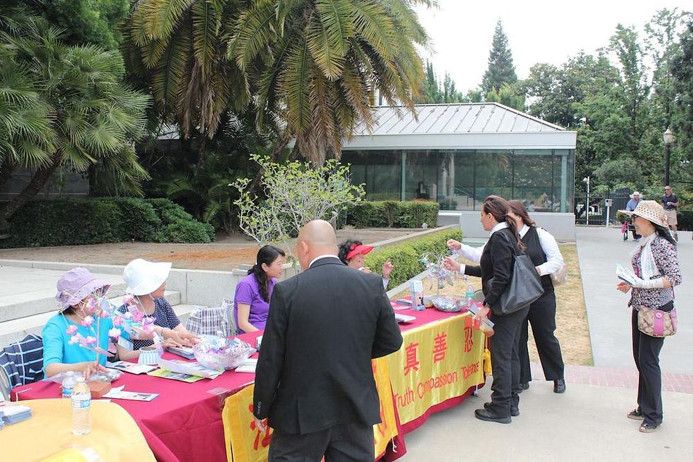 Stephani, koja radi za državnu administraciju, se zastavila kako bi čitala postere i doznala više o ovoj praksi kultivacije. Kazala je: "Planiram da se okušam u meditaciji i veoma sam sretna što vas danas vidim ovdje." Također je bila sretna kada je saznala da praktikanti u blizini nude besplatne instrukcije. Ona im se zahvalila na njihovim dobrovoljnim naporima.