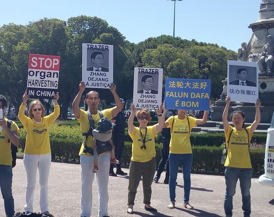 Praktikanti Falun Gonga iz Portugala su se ujutro 12. jula okupili ispred Belém Palacea u Lisabonu kako bi protestvovali protiv posjete Kineskog političara Zhang Dejianga. Noseći transparente na kojima je pisalo „Privedite Zhang Dejianga pred lice pravde" i „Zaustavite nasilnu žetvu organa u Kini," praktikanti su objašnjavali kako je Zhang duboko umiješan u gušenje Falun Gonga u Kini.