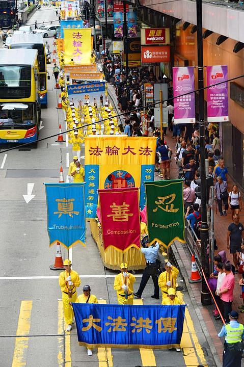 U 11h policija je (praktikantima) sugerisala da otkažu popodnevni mimohod (zbog moguće oluje). Međutim, organizatori su se odlučili da sačekaju i vide kakav će biti razvoj vremenske situacija. U podne su kiša i vjetar prestali, a znak za najavljenu oluju 8. kategorije je promijenjen na oluju 3. kategorije. Mimohod je startao prema predviđenom rasporedu. Policajci su bili zadivljeni. Jedan od njih je kazao: „Falun Gong je čudesan. Čak je i nebo uz njih."