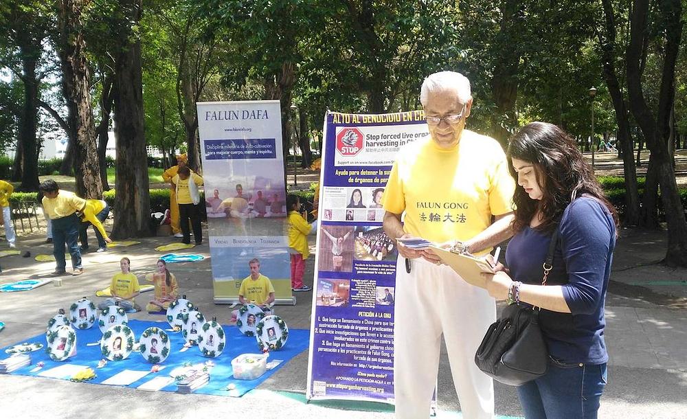 Istoga su dana praktikanti prikupljali potpise i na Trgu Juárez u Puebla. Veliki je broj prolaznika potpisao peticiju pozivajući kineski režim da prestane sa surovim kršenjem ljudskih prava.