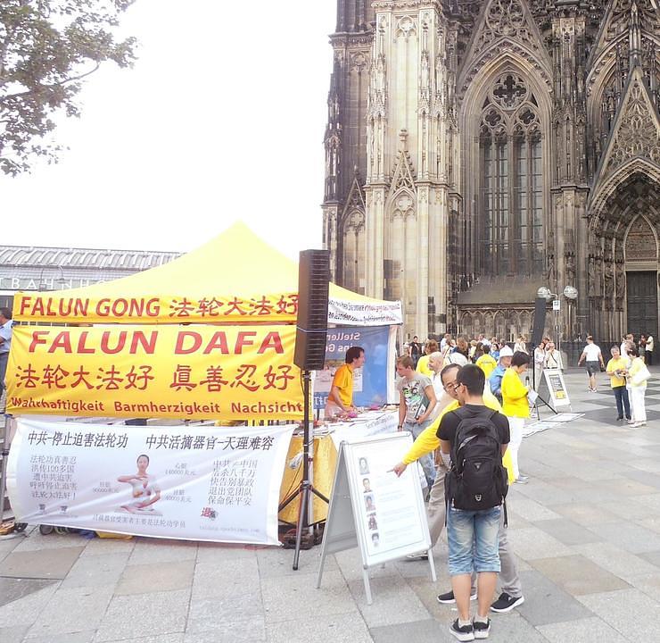 Falun Gong praktikanti iz Koelna i drugih gradova Sjeverne Rajne-Vestfalije održali su skup i informativne aktivnosti ispred katedrale u Koelnu od 25-27 kolovoza 2017. Skup je održan povodom proslave 30. godišnjice proglašavanja Koelna i Pekinga gradovima prijateljima.