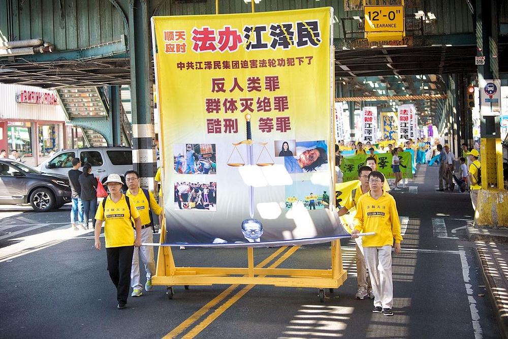 Više od 300 praktikanata Falun Gonga učestvovalo je na maršu 17. septembra 2017. u Bensonhurstu, drugoj po veličini kineskoj četvrti u Brooklynu. Marš je predvodio Tian Guo Marching Band, a iza njih su slijedile sekcije demonstracije vježbi, splav, tim barjaktara i dobošari.