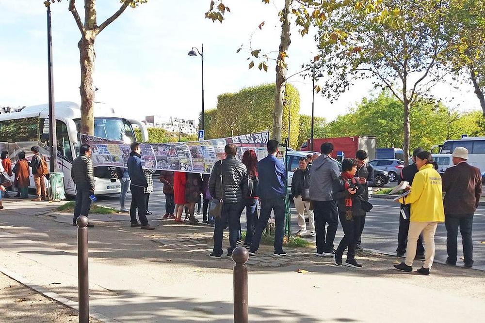 Praktikanti iz Pariza već godinama održavaju manifestacije ispred Ajfelovog tornja. Jako mnogo kineskih turista je od njih saznalo šta je stvarno Falun Gong i sa njima razmijenilo vlastite poglede.