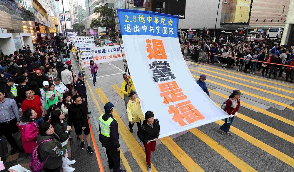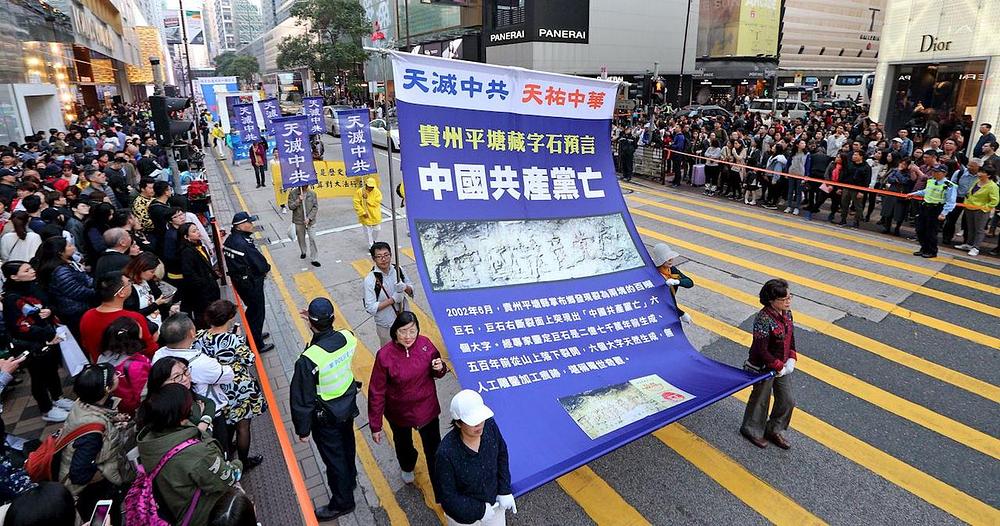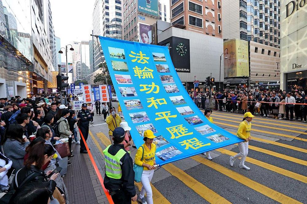 Praktikanti Falun Gonga marširaju ulicama Hong Konga prenoseći Falun Dafa poruku za okončanje progona u Kini.
