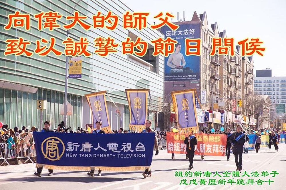 Falun Dafa praktikanti iz NTDTV i Epocha Timesa u New Yorku s poštovanjem žele uzvišenom Učitelju Li Hongzhiju srećnu Kinesku novu godinu!