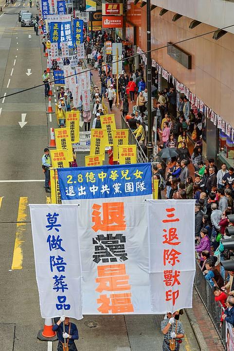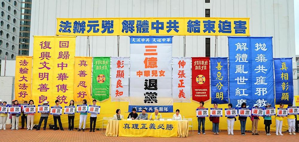 Praktikanti Falun Gonga i stanovnici Hong Konga su održali veliki skup i marš 18. marta 2018. kako bi proslavili izbor blizu 300 miliona stanovnika Kine da napuste Kinesku komunističku partiju (KKP) i njoj pripadajuće omladinske organizacije. Oni su također pozvali na okončanje skoro 19 godina dugog progona Falun Gonga u Kini i tražile dovođenje odgovornih počinioca koji su započeli progon, pred lice pravde.