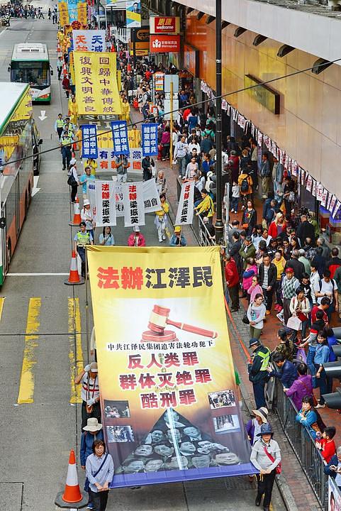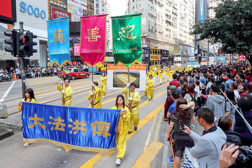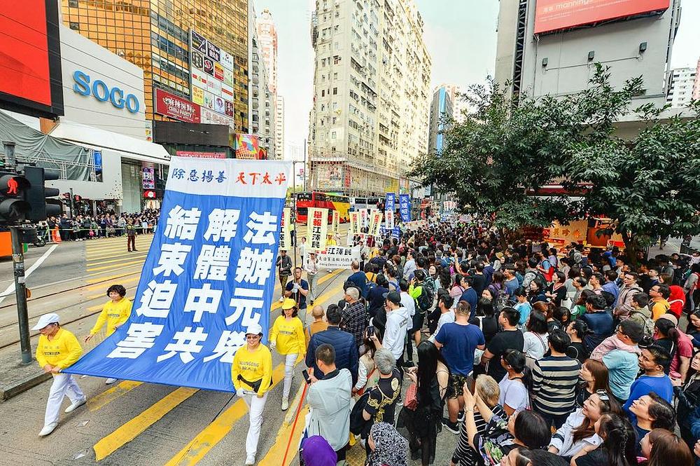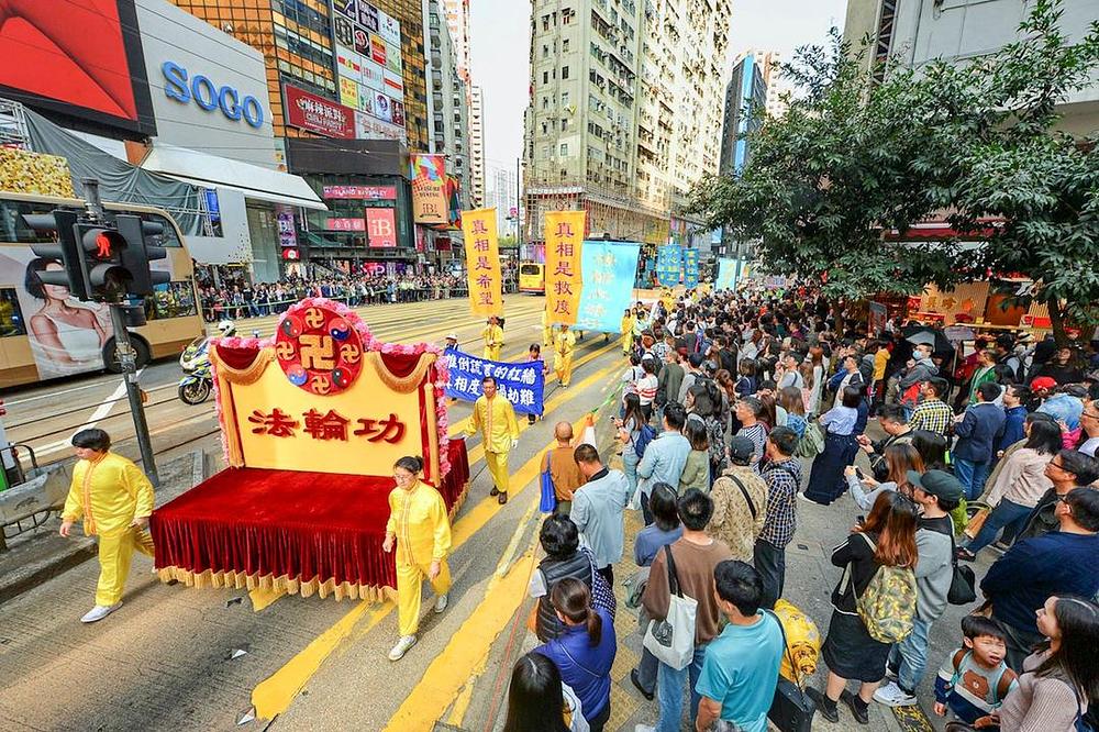 Poslije skupa je sa igrališta 'King's Road Playground' krenula parada. Parada je prošla pokraj brojnih znamenitosti u Hong Kongu prije nego što je završila ispred 'Kancelarije za vezu sa Centralnom narodnom vladom'. Marš je privukao mnoge gledaoce koji su stekli razumijevanje Falun Gonga i zašto je on progonjen od strane KKP.