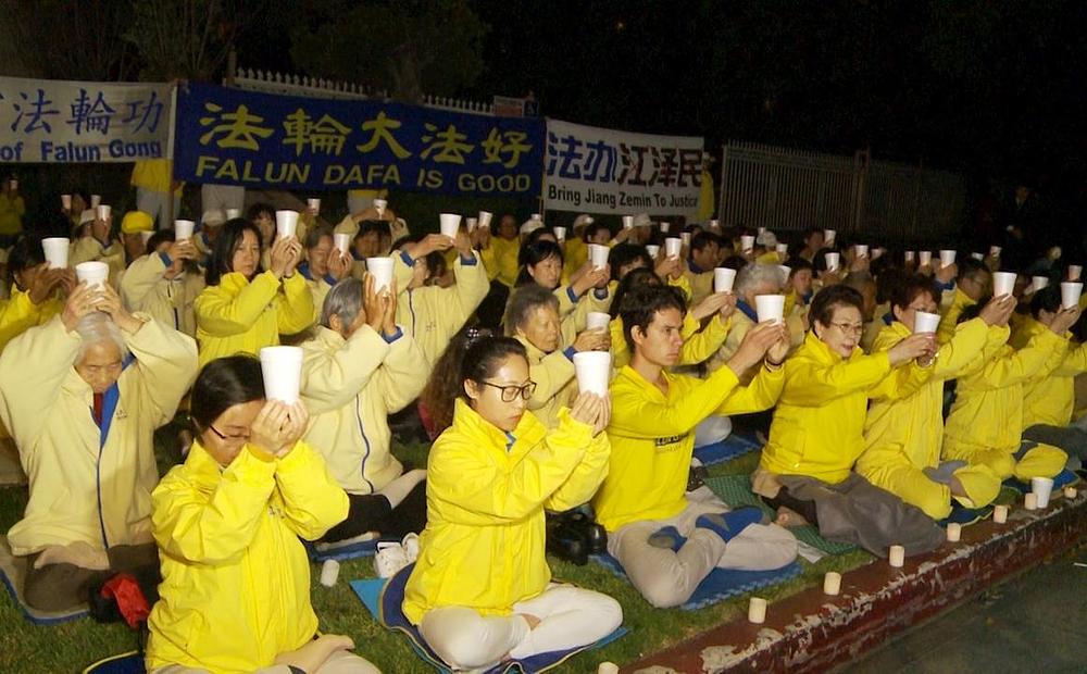 Bdijenje uz svijeće u Los Angelesu održano je navečer 23. aprila ispred Kineskog konzulata. Veliki transparenti su pozivali na ukidanje zvjerstava u Kini i dovođenje Jianga pred lice pravde.