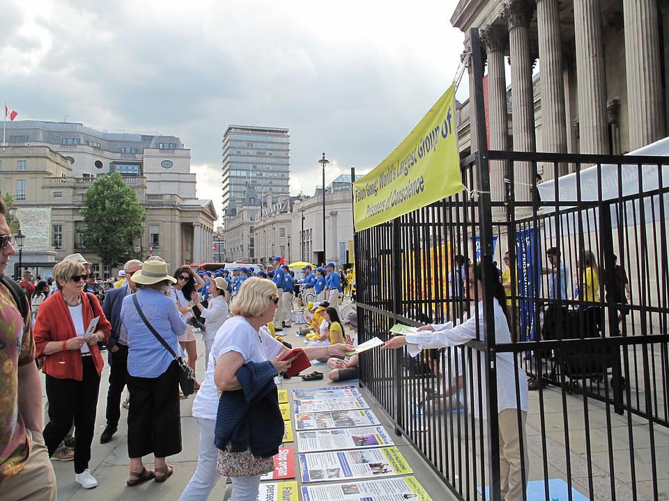 Praktikanti su u Londonu 3. juna održali manifestaciju pozivajući u pomoć u oslobađanju članova svojih porodica, zatvorenih u Kini zbog svoje vjere u Falun Gong.