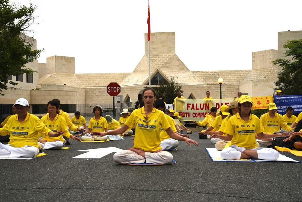 Gospođa Yu živi u Washingtonu D.C. i dolazi nekoliko puta nedeljno da protestuje ispred kineske ambasade.