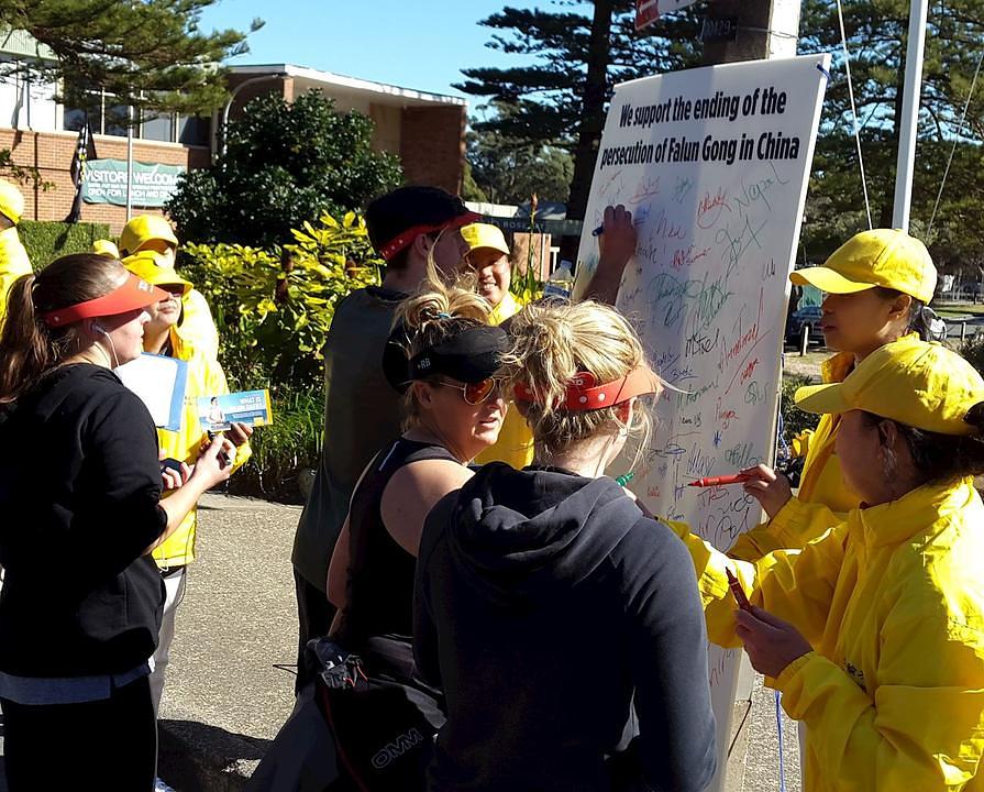 Dok je velika grupa maratonaca u sklopu humanitarne manifestacije "City to Surf" u jutarnjim satima 12. avgusta 2018. trčala ulicama Sydneyskog Rose Baya, ugledali su nešto neočekivano: praktikante Falun Gonga u žutim majicama i transparentima sa natpisima "Svijetu treba Istinitost-Dobrodušnost-Tolerancija" i " Falun Dafa je sjajan".