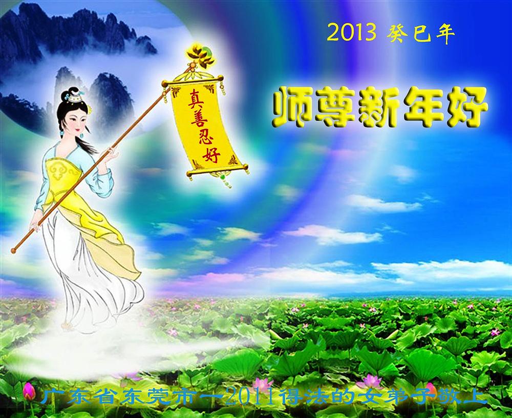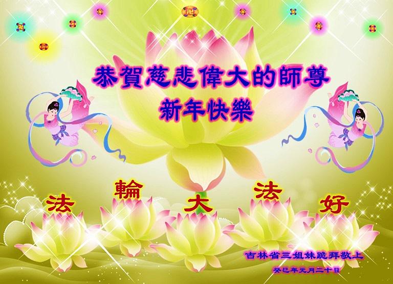 Dolaskom Kineske Nove Godine, Falun dafa praktikanti u Kini i diljem svijeta, kao i ne-praktikanti koji su saznali istinite činjenice o Falun Dafa, na Minghui šalju pozdrave, ručno izrađene čestitke i slične materijale koji sadrže njihove srdačne poruke. Žele poštovanom i dobrodušnom Učitelju Li Hongzhiu sretnu Kinesku Novu Godinu i izražavaju zahvalnost povodom Učiteljevog spasenja. Istovremeno, Falun Dafa praktikanti su izrazili da će istinsku pratiti Učiteljeva učenja, stalno se dobro kultivirati, dobro učiti Fa, gledati unutar sebe kada naiđu na probleme, da će dobro surađivati, pomoću Učitelju u Fa – ispravljanju i spasiti još više živih bića.