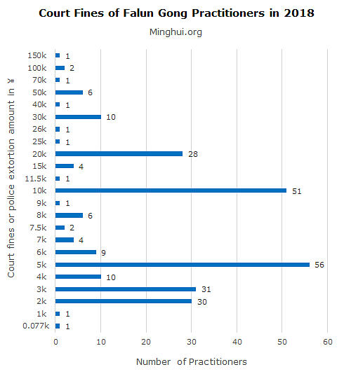 Pored izricanja zatvorskih kazni, 258 praktikanata je novčano kažnjeno od strane suda ili je policija iznudila novac od njih u ukupnom iznosu od 2.880.577 yuana, dok je prosječna novčana kazna iznosila 11.165 yuana po praktikantu.