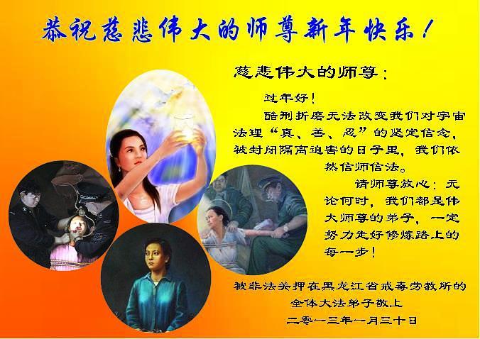 Svi istinski praktikanti nezakonito pritvoreni u Ženskom radnom logoru br. 1 provincije Shandong u gradu Jinanu žele poštovanom Učitelju sretnu Kinesku Novu Godinu! Učitelju, naporno radite!