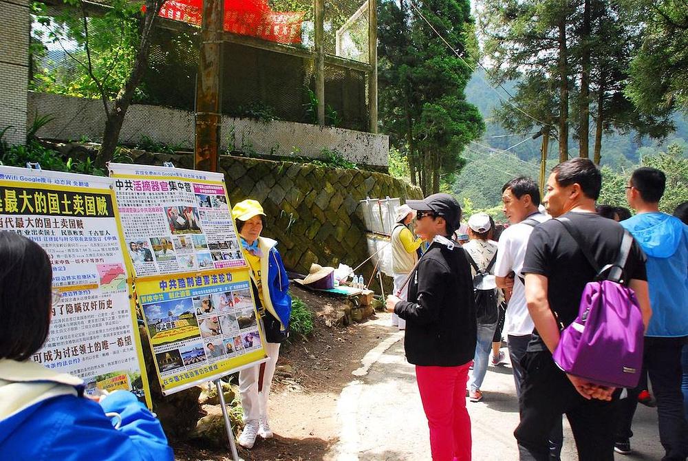 Falun Gong praktikanti redovno održavaju aktivnosti na podizanju svijesti u nacionalnoj pejsažnoj oblasti Alishan, poznatom tajvanskom turističkom mjestu, smještenom u istočnom okrugu Chiayi.