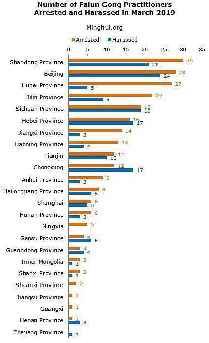 Prema informacijama koje je prikupio Minghui.org, u martu 2019. godine je u Kini zabilježeno 245 slučajeva hapšenja Falun Gong praktikanata, dok su još 162 praktikanta maltretirana zbog odbijanja da se odreknu svoje vjere.