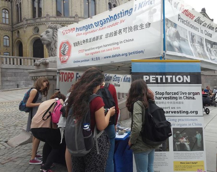 Iako malo Falun Dafa praktikanata živi u Norveškoj, svi učestvuju u aktivnostima informisanja javnosti o progonu u Kini. Svake subote praktikanti u Oslu postavljaju izložbu ispred zgrade parlamenta i prikupljaju potpise kako bi zaustavili progon. Svake nedelje popodne oni rade vježbe u parku kod palače i podučavaju vježbe novajlijama. Na važne datume, praktikanti održavaju aktivnosti ispred kineske ambasade.