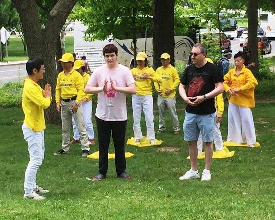 Ovo je Robertu bio prvi put da je na Nijagarinim vodopadima u grupi s drugim praktikantima. On je priznao da u početku nije stvarno želio doći ovamo. Roberta je ovamo "dovukao" Xuchen, njegov rođak. “Bio sam prilično nezadovoljan jer sam se želio odmoriti prije drugog događaja. Danas se osjećam sjajno, posebno zato što znam da je toliko ljudi žarko željelo saznati šta je Falun Gong i naučiti vježbe. Moram se zahvaliti svom rođaku”, rekao je Robert.