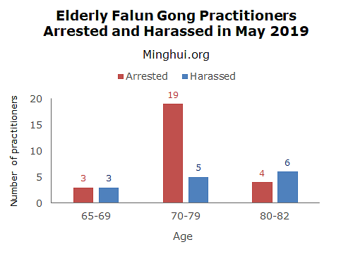 Ni praktikanti starije dobi nisu bili izuzeti iz ove kampanje: 40 praktikanata koji su se našli na meti policijskog progona (26 uhapšenih i 14 maltretiranih) su bili stari između 65 i 82 godine.