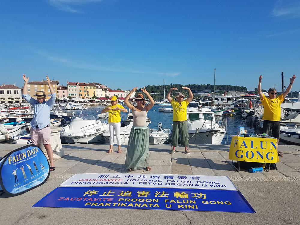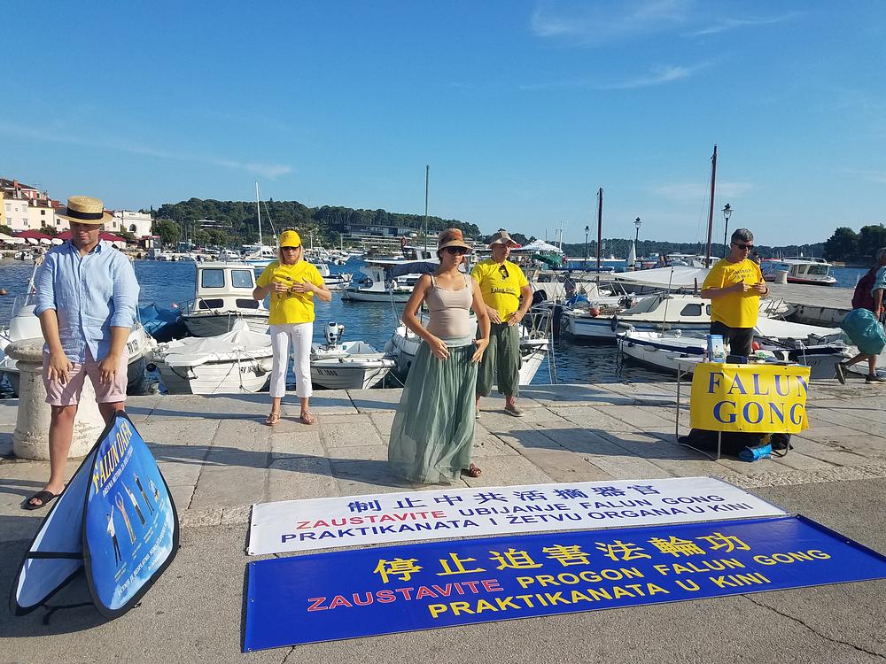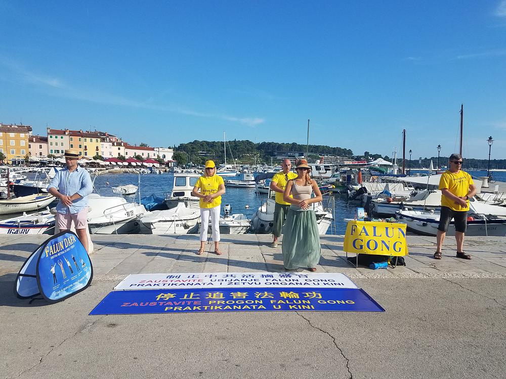 Rovinj je poznati turistički grad na obali Jadrana, koji je ljeti prepun turista. To je omogućilo praktikantima da brojnim turistima i posjetiteljima Rovinja predstave Falun Dafa, praksu kultiviranja uma i tijela te da ih informiraju o progonu praktikanata i žetvi organa koja se događa u Kini.
