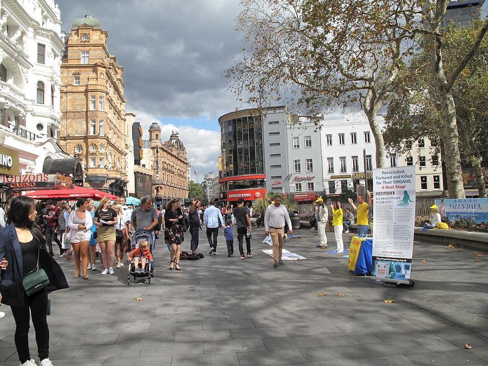 Tokom praktikantskih aktivnosti na popularnim turističkim atrakcijama tokom Evropske konferencije za razmjenu iskustava 2019, održane u Londonu od 29. avgusta do 1. septembra, mnogi su prolaznici imali priliku saznati za Falun Gong i njegov progonu u Kini. Aktivnosti su održane na trgu Trafalgar, ispred Downing Street br. 10, ispred Britanskog muzeja i na trgu Leicester.