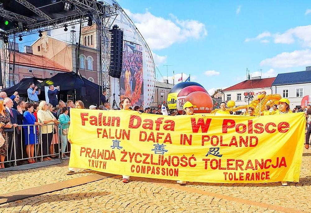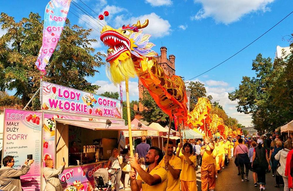 Godišnji Festival cvijeća, voća i povrća, 42. po redu, je održan 14. septembra 2019. u Skierniewice u Poljskoj, a grupa Falun Gong praktikanata koja je izvodila zmajev ples je učestvovala u paradi održanoj u sklopu festivala. Ovo je peti put da se praktikanti pridružuju ovoj godišnjoj manifestaciji, a njihovi jarko obojeni plavo-žuti transparenti i živahna izvedba plesa zlatnoga zmaja su dobili tople aplauze publike.