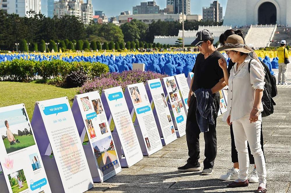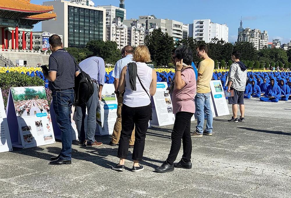 Oko 6.000 Falun Dafa praktikanata se okupilo na Trgu slobode u Taipeiju 16. novembra 2019. godine uoči održavanja Falun Dafa konferencije za razmjenu iskustava na Tajvanu 2019. godine, kako bi izvodili vježbe i sudjelovali u formiranju velikih kineskih karaktera. Oni su formiranjem ovih karaktera slavili Falun Dafa praksu (poznatu i kao Falun Gong) i činjenicu da se ona prakticira u cijelom svijetu. Osam hiljada praktikanata sa Tajvana, i još 1.150 Dafa praktikanata iz 18 drugih zemalja - uključujući Japan, Vijetnam, Koreju, Maleziju, Indoneziju, Filipine, Argentinu, Ukrajinu, SAD, Španiju, Rusiju, Hong Kong, Makao, Kanadu, Njemačku, Australiju, Izrael i Brazil – su također su sudjelovali u aktivnostima.