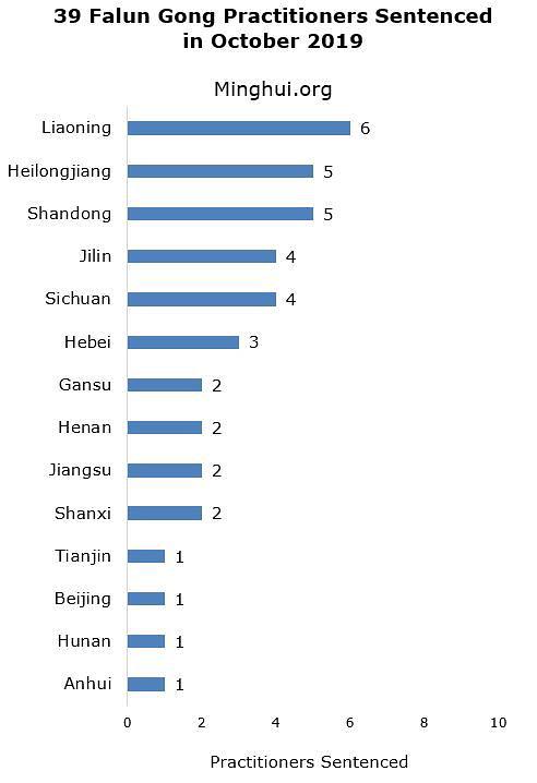 Prema informacijama koje je prikupio Minghui.org, u mjesecu oktobru 2019. godine je zabilježeno 39 novih slučajeva praktikanta Falun Gonga koje je sudski sistem Komunističke partije Kine (KPK) osudio na zatvorske kazne.
