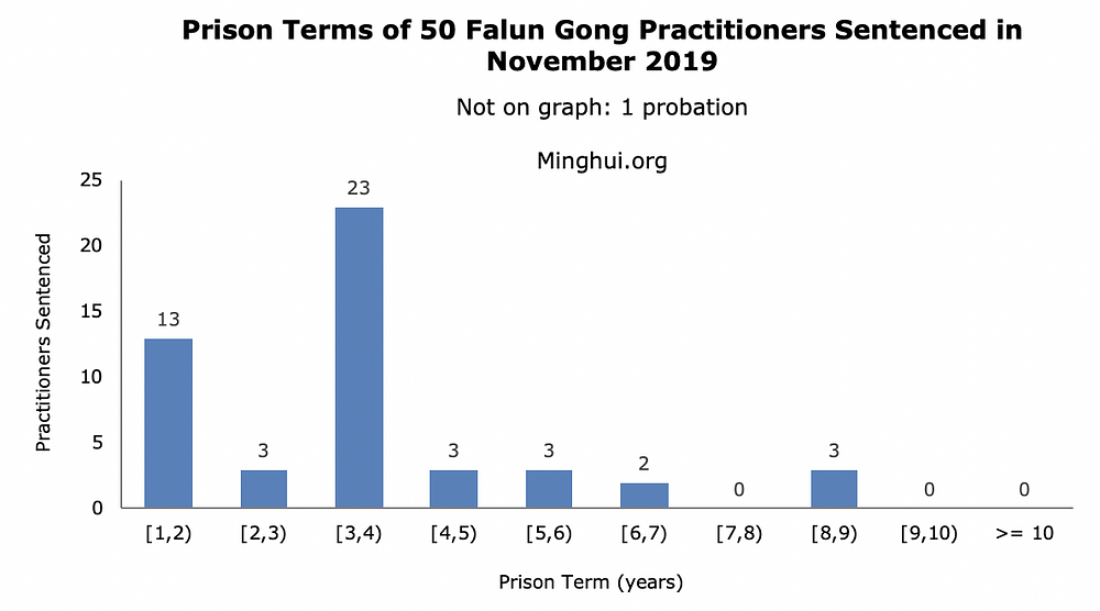 Prema informacijama koje je prikupio Minghui.org, u novembru 2019. godine je 50 praktikanta Falun Gonga osuđeno na zatvorske kazne od strane Komunističke partije Kine (KPK).