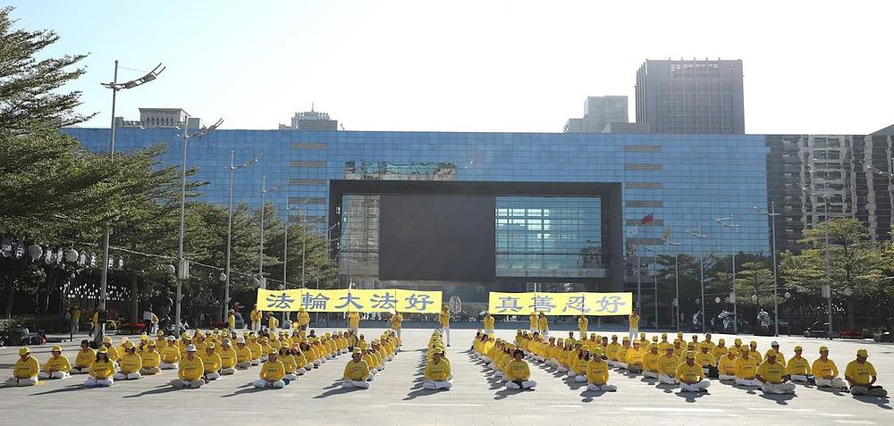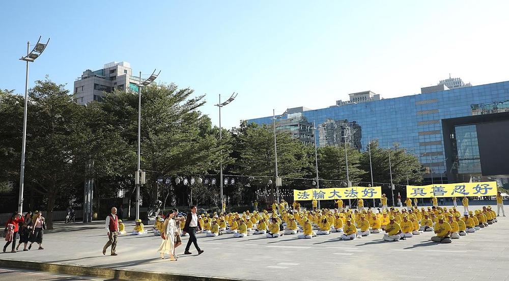 Praktikanti iz Taichunga su se ovog mjeseca,14. decembra 2019, okupili na Trgu ispred glavne vijećnice i demonstrirali izvođenje vježbi. Snimili su i grupnu fotografiju kako bi učitelju Li Hongzhiju, osnivaču Falun Gonga, poželjeli sretnu Novu godinu.