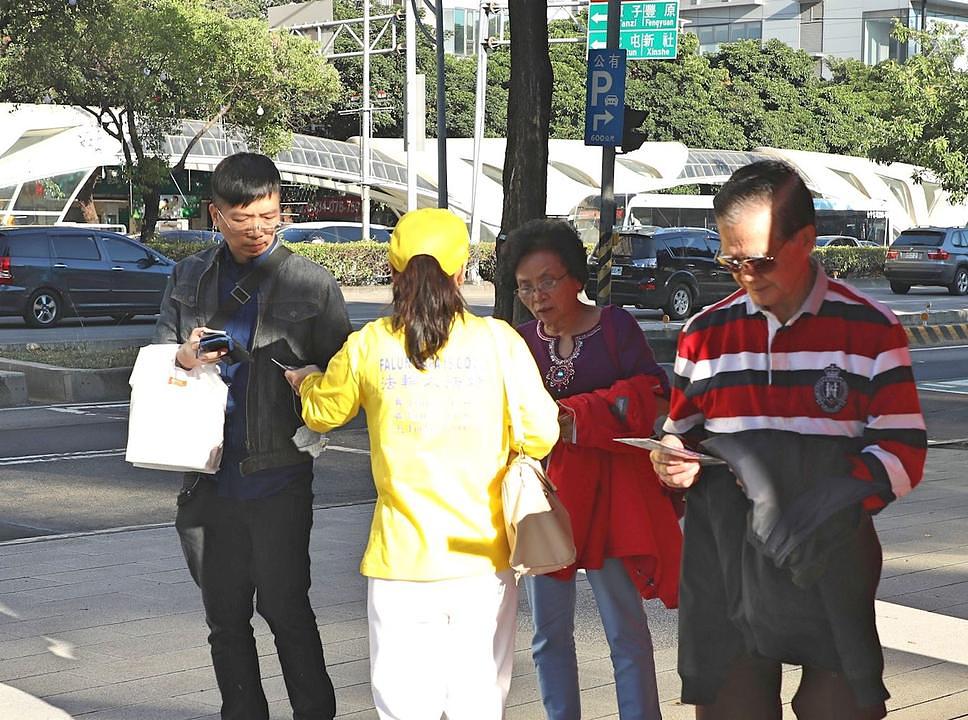 Praktikanti su s ljudima razgovarali o progonu prakse koji se dešava u Kini, pa su mnogi željeli pokazati svoju podršku praktikantima potpisivanjem peticije kojom se zahtijeva prekid dvadesetogodišnjeg progona i dovođenje bivšeg kineskog vođe Jianga Zemina pred lice pravde.