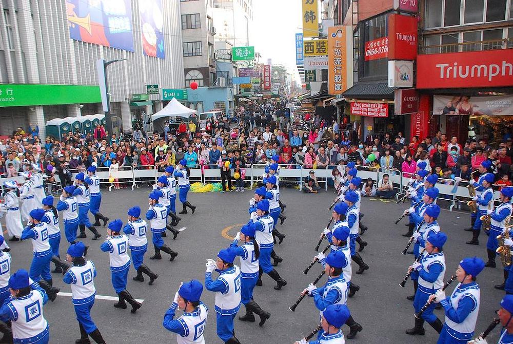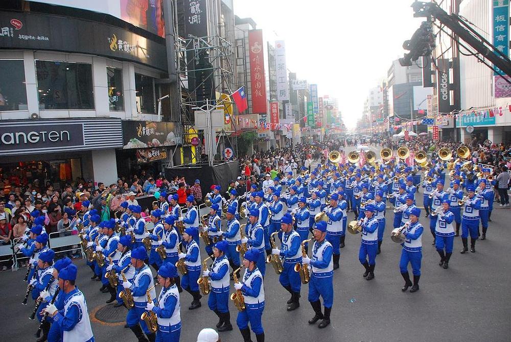 Polazeći od čuvene kružne fontane u ulici Zhongshan, parada duga dva kilometra je prošla kroz gradsku poslovnu četvrt i završila na gradskom stadionu Chiayi. Tian Guo Marching Band je svoj nastup počeo kompozicijom „Falun Dafa je dobar“, a potom su svirali „Trijumfalni povratak“, „Svetu pjesmu“ kao i druge melodije. Pored praznične muzike i kompozicije „Radosti svijetu“, bend je izveo i tajvansku narodnu pjesmu, „Gao Shan Qing“, ili Veliku zelenu planinu. Njihova je muzika mamila tople aplauze gdje god da su išli.