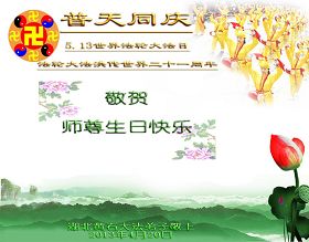 Među čestitkama koje pristižu iz provincije Hubei je i čestitka jedne obitelji praktikanata iz Tuanfeng okruga, grada Huanggang u kojoj su napisali: " Poštovani Učitelji, sa svakim dolaskom Vašeg rođendana nas obuzmu emocije, jer nakon tisuća godina čekanja, napokon smo primili Dafa univerzuma kojeg je stvorio Učitelj. Također smo tužni zbog klevete od strane zlobne partije i napada starih sila. Učitelj je pretrpio jako puno za nas."