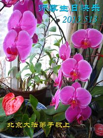 Praktikanti iz grupa za učenje Fa u Daxingu, u Pekingu s poštovanjem žele milostivom velikom Učitelju sretan 62. rođendan i slave 21. godišnjicu predstavljanja Falun Dafa u javnosti!