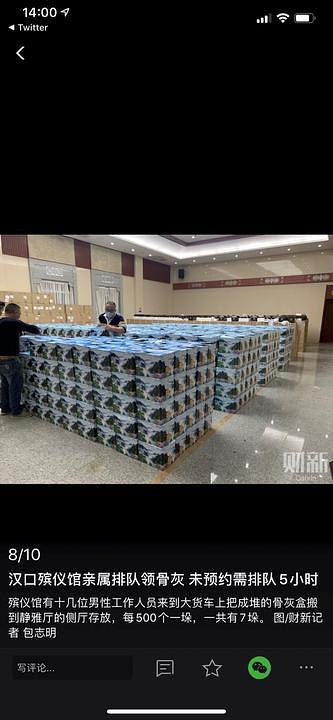 Hankou pogrebno poduzeće je prema navodima kineskog medija Caixina zaprimilo dvije pošiljke od 5.000 urni u periodu 25.-26. ožujka. Oni koji nisu zakazali termin su čekali u redu i do pet sati kako bi preuzeli urnu s pepelom.