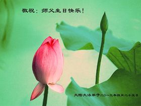 Praktikanti iz sljedećih gradova i okruga u kontinentalnoj Kini slave Svjetski Falun Dafa dan i 21. godišnjicu predstavljanja Falun Dafa u javnosti te s poštovanjem Učitelju Liju šalju rođendanske čestitke!