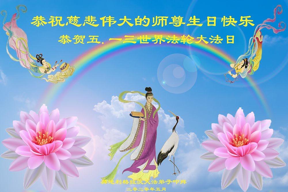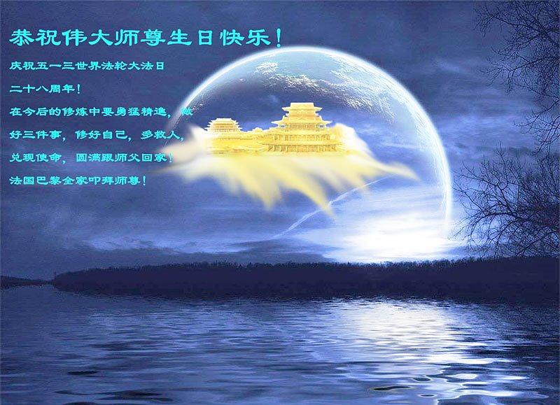 Praktikanti iz UK, Francuske, Irske, Holandije, Nemačke, Belgije, Austrije i Švajcarske obeležavaju Svetski Dan Falun Dafe i 28. godišnjicu javnog predstavljanja Falun Dafe. Oni s poštovanjem žele cenjenom Učitelju srećan rođendan! Čestitke dolaze iz sledećih mesta:
