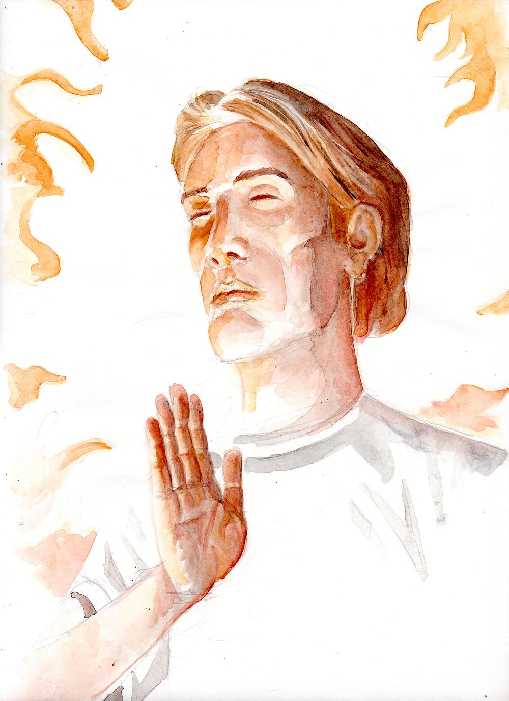 Slika prikazuje Falun Gong praktikanta koji šalje ispravne misli kako bi eliminirao smetnje od negativnih faktora u drugim dimenzijama.