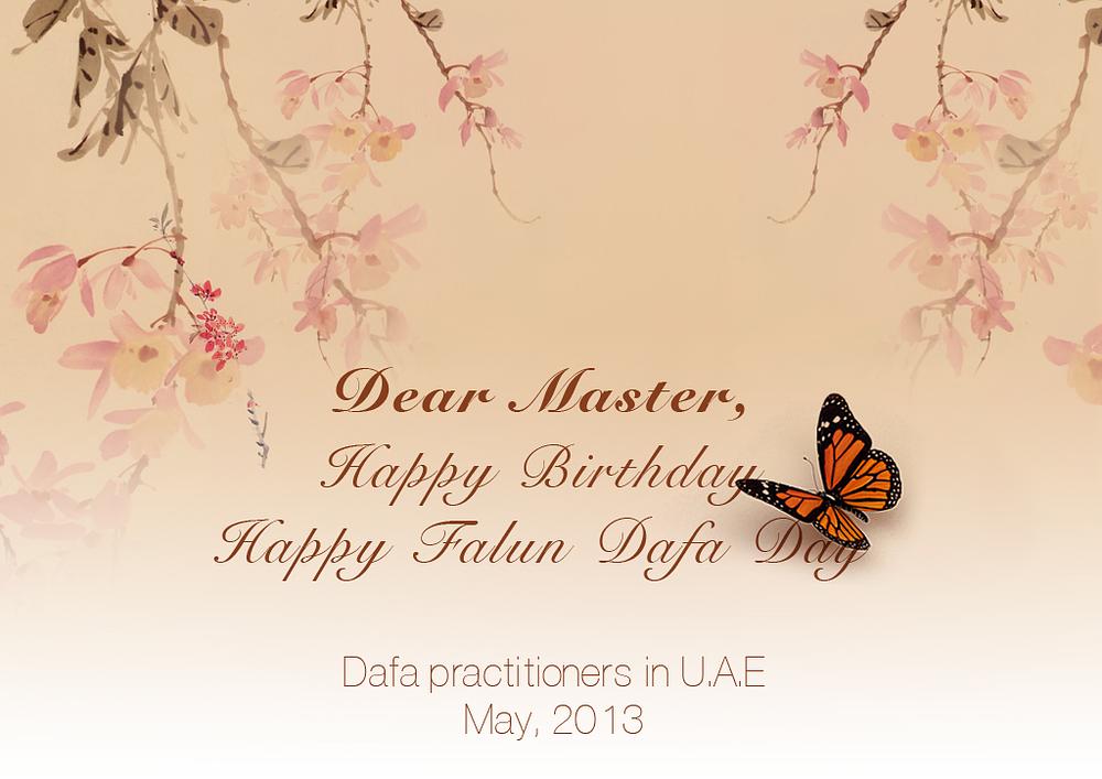 Praktikanti iz U.A.E s poštovanjem žele cijenjenom Učitelju sretan rođendan i Falun Dafa dan!