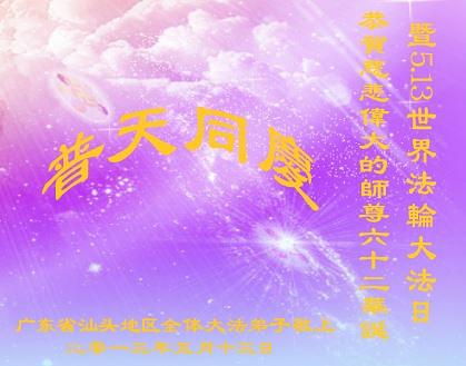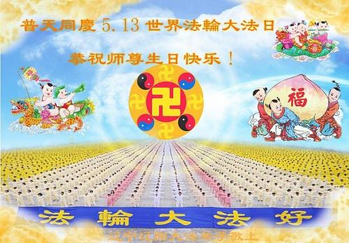 Praktikanti iz sljedećih područja u Kini slave Svjetski Falun Dafa dan, 21. obljetnicu predstavljanja Falun Dafa u javnosti i šalju rođendanske čestitke Učitelju Li Hongzhiju.