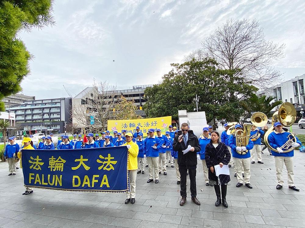 Na skupu je govorio Anthony Brunt, bivši gradski vijećnik u Wellingtonu. „Otvoreno se protivim Komunističkoj partiji Kine (KPK) i njenom groznom nepoštovanju ljudskih prava, naročito progona Falun Gonga, a od nedavno i progona Uygura", rekao je. „Ova su brutalna nedjela zabilježena i dokumentovana - represivni nadzor, bezobzirna hapšenja, oštre zatvorske kazne, mučenja, silovanja, oduzimanje organa na najbrutalniji način i ubistva."