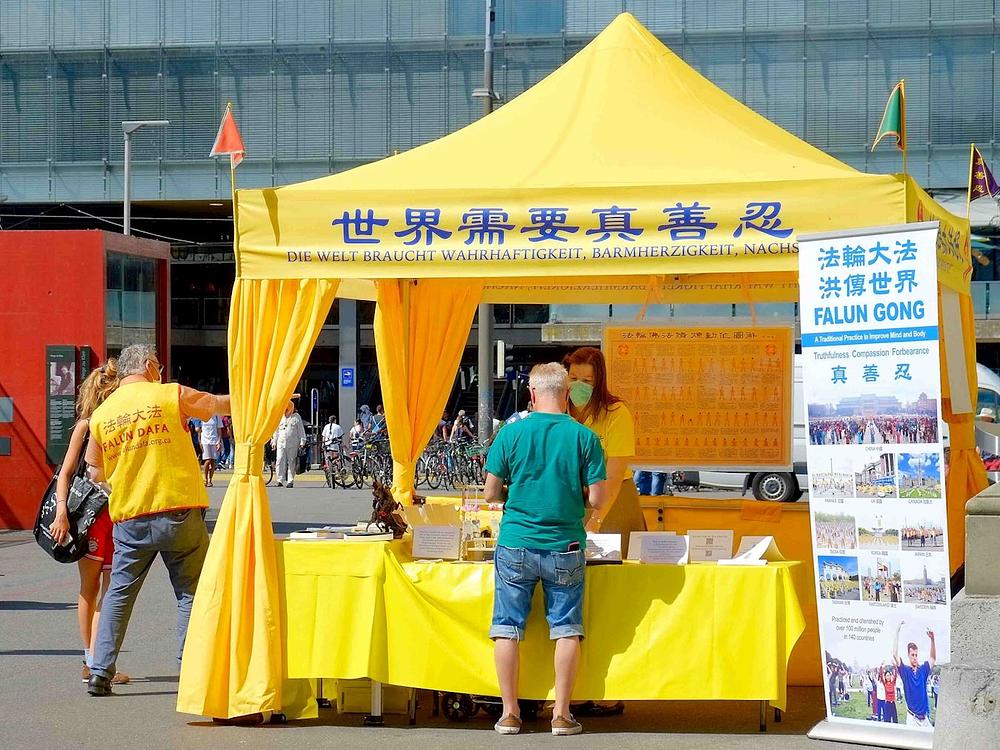 Falun Dafa praktikanti su, 14. i 15. avgusta 2020. godine, u Švicarskoj održali informativne događaje u Bazelu, Cirihu i Bernu. Njihove su demonstracije vježbi privukle veliki broj prolaznika znatiželjnih da saznaju više o Falun Dafa. Mnogi su od njih bili šokirani kad su, čitajući o progonu u Kini, saznali da se zatvorenim praktikantima, bez njihovog pristanka, uzimaju tjelesni organi i prodaju radi zarade. Neki su ljudi potpisali peticiju koja poziva na okončanje progona i ponijeli kući pamflete kako bi o ovome više saznali.