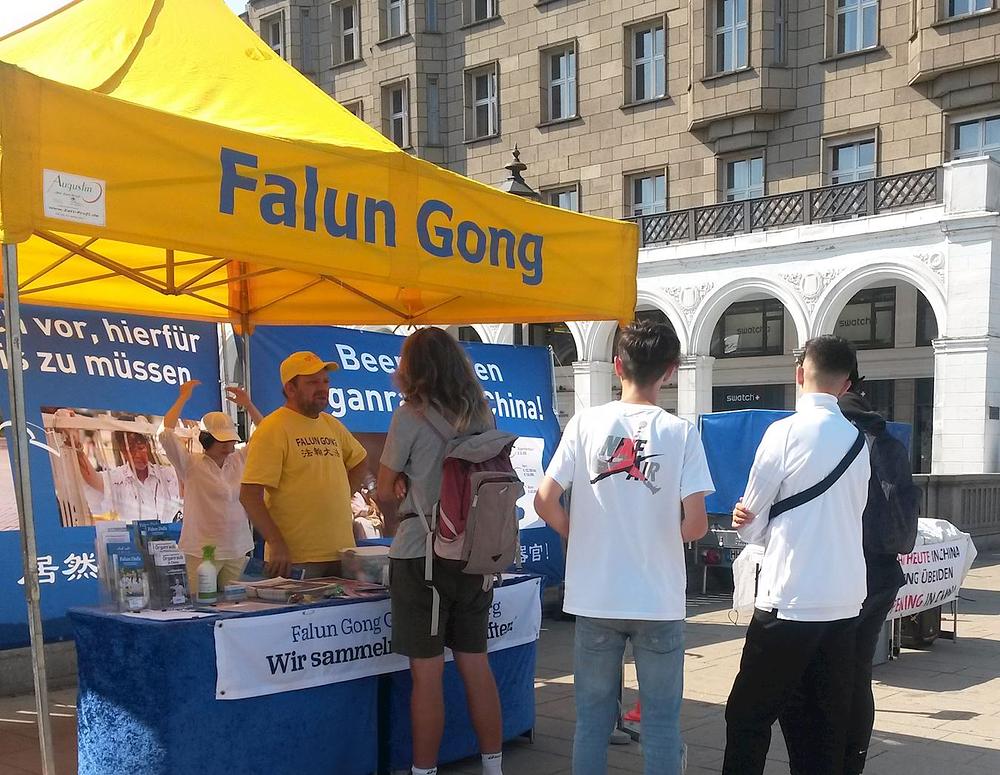 Falun Gong praktikanti su, 15. avgusta 2020. godine, održali svoju manifestaciju na Reesendammbrücke, istorijskom mostu u centru Hamburga u Njemačkoj.