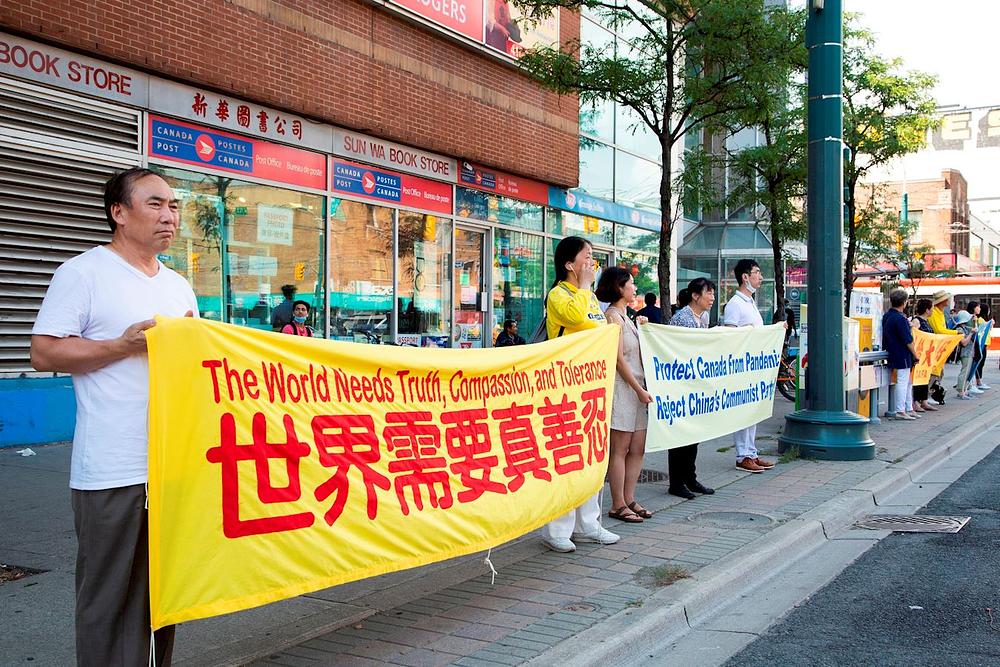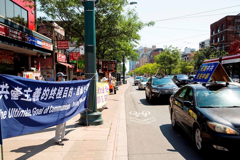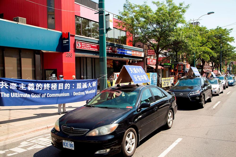 Skup i automobilska parada su održani u centru grada Calgaryja 22. avgusta. Nakon završetka skupa, kolona od oko 20 automobila, s porukama, "Nebo će uništiti KPK", "KPK je najgori zli virus koji ugrožava cio svijet", i "Ljudi umiru zbog toga što je KPK lagala o virusu” je kružila gradom, krećući se od kineske četvrti, a zatim idući ka kineskom supermarketa T&T u sjeveroistočnom okrugu. Parada je trajala gotovo dva sata.