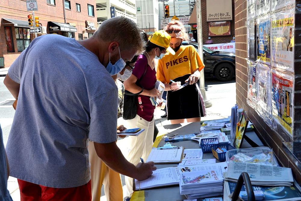 Praktikanti Falun Gong su, 30. avgusta 2020. godine, priredili skup u kineskoj četvrti u Filadelfiji u znak protesta protiv progona Falun Gonga u Kini. Desetine praktikanata su držali istaknute transparente i plakate, a nekoliko je praktikanata održalo govore kako bi skrenulo pažnju na zločine koje čini Komunističke partija Kine (KPK) nad miroljubivim građanima koji teže da žive u skladu s principima Istinitosti-Dobrodušnosti-Tolerancije.