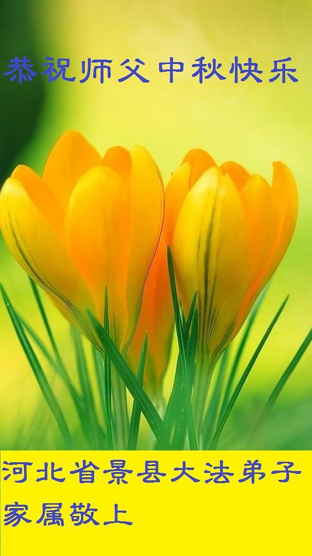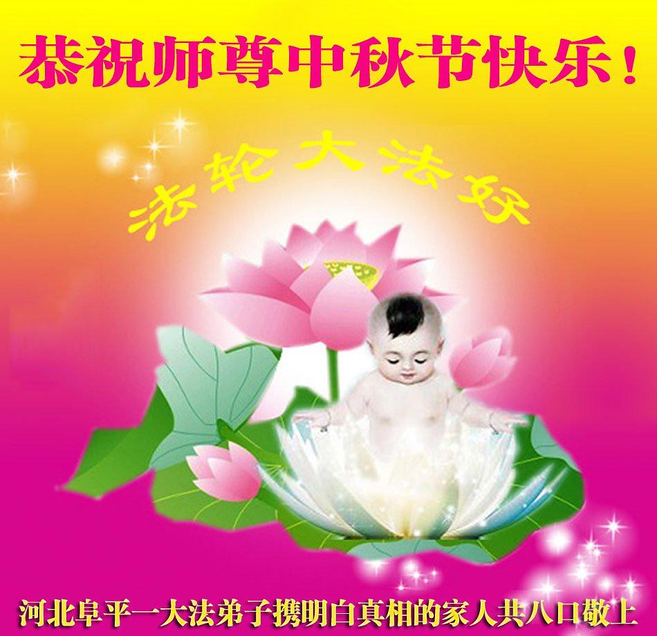 Članovi porodice Dafa praktikanta iz grada Tangshana u provinciji Hebei su zaželjeli Učitelju Liju sretan Jesenji festival. Oni u svojoj poruci kažu: „Pozdravljamo Učitelja, naporno ste radili. Mi smo velika porodica i zato što članovi naše porodice prakticiraju Dafa, vi ste nas zaštitili i dobili smo blagoslov. Vodimo siguran, zdrav i sretan život u tako uzburkanim vremenima. Znamo da je to zato što je Učitelj podnio sve vrste pritisaka da bi spasi čovječanstvo usred korupcije propadanja moralnih vrijednosti."